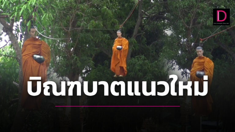 ฮือฮาหลวงพี่มาแนวใหม่ หุ่นพระสงฆ์ลงจากสวรรค์ รับบาตรญาติโยม