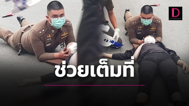 ชื่นชม ‘ตร.น้ำดี’นอนราบช่วยผู้บาดเจ็บเต็มที่ ไม่สนพื้นถนนจะร้อนแค่ไหน
