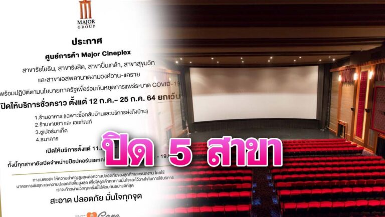 หวั่นโควิดลาม! เมเจอร์ฯแจ้งปิด 5 สาขาชั่วคราว 14 วันรวด
