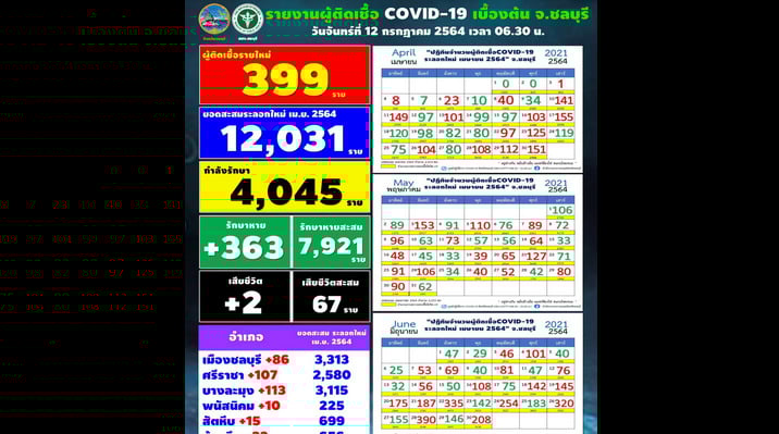 โควิดชลบุรีวันนี้พุ่ง399ราย กระจาย29คลัสเตอร์ ‘สถานประกอบการ-ตลาด-แคมป์-ชุมชน’ 12 กรกฎาคม 2564 8:49 น.