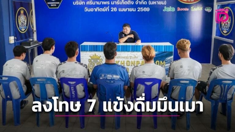 สอบแล้วผิดจริง! ‘ทีมไทยลีก 2’ ลงโทษ 7 แข้งดื่มของมึนเมาจนเป็นกระแส-สถานการณ์ทีมก็กำลังร่อแร่ 21 เมษายน 2569 21:24 น.