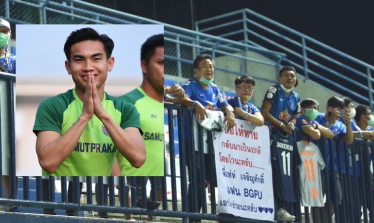 แม้คนละทีม! ‘แฟนบีจี’ทำป้ายเป็นกำลังใจ ‘เจริญศักดิ์’ดาวเตะเขี้ยวสมุทรที่เดี้ยงหนัก 15 พฤศจิกายน 2564 20:55 น.